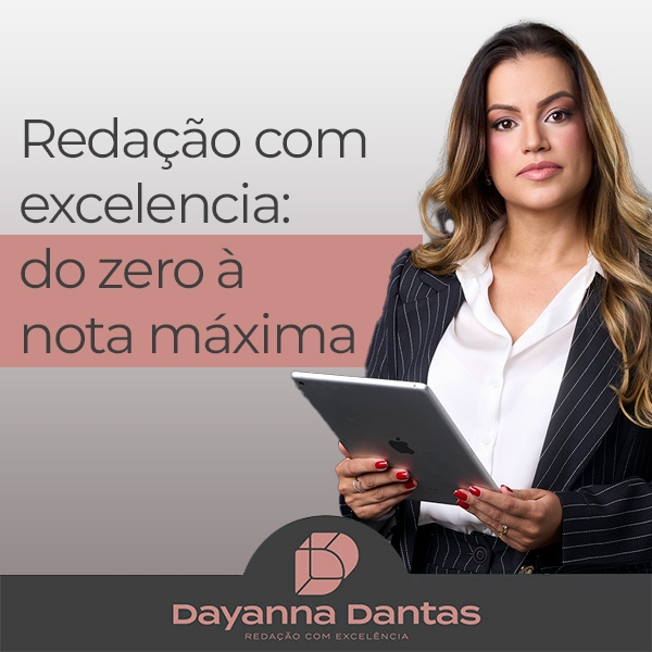Com uma vida profissional dedicada a sua grande paixão, Dayanna acredita que, quando se aprende de verdade a redigir um texto, é um conhecimento adquirido para a vida inteira, um conhecimento que vai muito além de um concurso. Hoje, seu grande objetivo é ensinar seus alunos a desenvolverem habilidades que possibilitem a produção de uma redação com excelência.